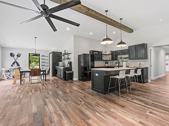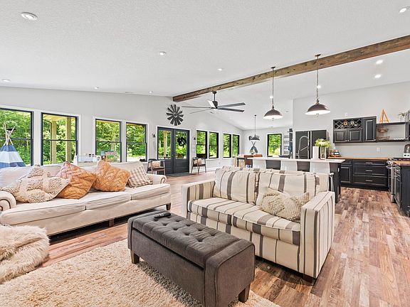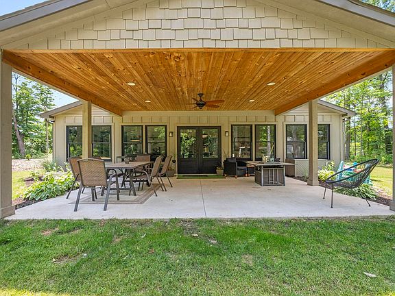 MAJOR PRICE IMPROVEMENT. Experience country-style living at its finest with this remarkable home nestled on 4.35 acres, complete with a spacious 39x51 garage. Situated just one mile south of Hwy 30 and Sweetwater Sound, this property offers both convenience and tranquility, surrounded by a serene, tree-lined landscape that ensures privacy. Step onto the expansive covered porch, built with poured footers that allow for future enclosure if desired. Inside, discover a thoughtfully designed layout ideal for entertaining, seamlessly flowing into the porch area which is perfect for both cooking and hosting gatherings. The home features quality craftsmanship with contemporary touches, highlighted by natural wood accent beams and mantel. For added comfort, the entire house is equipped with plastic tubing lines embedded in the slab, ready for a boiler installation to support radiant floor heating or an alternate heating system. Additional highlights include a substantial attached garage, tailor-made for a workshop, hobby space, or a coveted man cave.