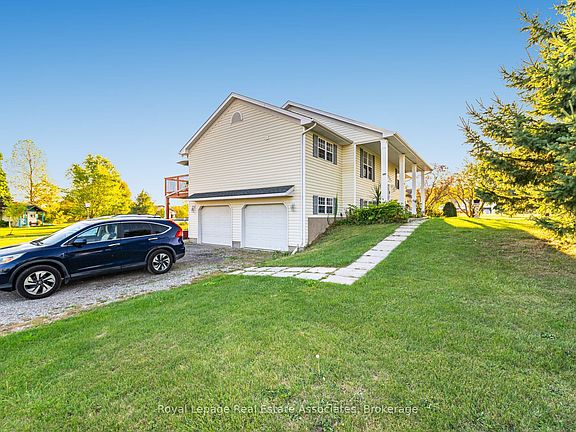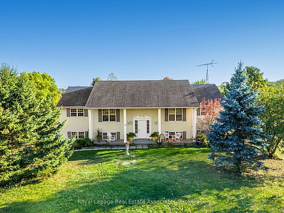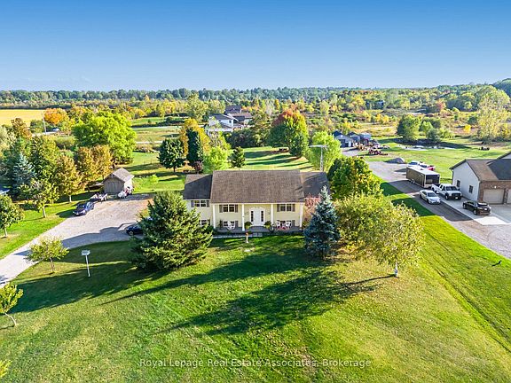 Welcome to this Gem on Over 2 Acres!This beautifully appointed home offers over 3,000 sq. ft. of living space, thoughtfully designed for family living and entertaining. Nestled on a private 2+ acre lot and located less than 5.1km from Crystal Beach, this property combines tranquility, convenience, and modern comfort. Main Floor Features: Step into a bright Living Room with elegant herringbone hardwood floors and a cozy gas fireplace. The formal Dining Room showcases matching hardwood, while the spacious Family Room/Office offers hardwood flooring and a walkout to the backyard. The Kitchen boasts hardwood floors, granite countertops, pot lights, and a pantryperfect for the home chef. The Primary Bedroom features laminate flooring, a 5-pc ensuite, and direct access to the expansive wrap-around balcony. Two additional bedrooms with laminate flooring and closets, plus a 4-pc bath, complete this level. The versatile Bonus Room, also with balcony access, offers extra space for an office, playroom, or den. The Living Room, Bonus Room, and Primary Bedroom all enjoy walkouts to the stunning wrap-around balcony with serene views of the property. Lower Level Retreat: The fully finished lower level offers a large Recreation Room with laminate flooring, pot lights, and a walkout to the backyard. A second Kitchen with granite countertops, island makes this level ideal for extended family or entertaining. Two generous bedrooms with laminate flooring, large windows, and closets provide comfort and functionality. A modern 3-pc bath with granite countertop completes this level. Property Highlights: Over 2 acres of private land, Less than 5.1 km to Crystal Beach, Expansive wrap-around balcony with multiple access points, 5 Bedrooms + Bonus Room + 3 Full Bathrooms, Multiple living and entertaining spaces, Modern finishes including granite, pot lights, and hardwood/laminate flooring,Above Ground Pool to make this Perfect for multi-generational living !!!