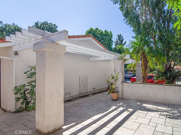 Popular three-bedroom, two bathroom, single-level end-unit ANDALUZ residence in the active 55+ Laguna Woods senior community. Located on a quiet cul-de-sac, this property is far from busy roads and noisy highways. The enormous front courtyard has stone paver flooring and is perfect for both large-scale social events as well as smaller more intimate gatherings. The massive living room has a wood-burning fireplace and easily accommodates various configurations of large furnishings. The living room has direct access to an open rear patio. The kitchen has stainless steel appliances and a window overlooking the front courtyard. One of the two guest bedrooms could easily serve as an office, exercise room or arts and crafts studio. This unit has many original elements along with several desirable upgrades including dual-pane windows and recessed lighting. Solar tubes have been installed in the master bathroom and hallway. The oversized garage has washer-dryer hookups and can accommodate two vehicles plus a golf cart. This residence is a short walking distance to both Clubhouses 5 and 6 with swimming pools, a hot tub, gym and meeting rooms. Move in as-is or completely remodel to your personal taste.