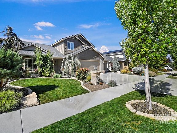The LANDSCAPING at this home will make it your own unique oasis! Located in the heart of Meridian, this professionally landscaped home is LOADED with interior upgrades and is in EXCELLENT condition: Rustic wood floors, open kitchen with stainless appliances, upgraded cabinetry, mosaic tile accents, granite center island and counter/ cabinet space galore. There is a cozy office or sitting area with 12' ceilings, and double glass doors. The spacious living area boasts a gas fireplace and large windows to enjoy the custom-built backyard waterfall feature and elegant fenced / landscaped backyard which includes three fruit trees, covered patio with sunscreens, mature landscaping and beautiful sunsets.
