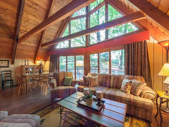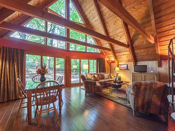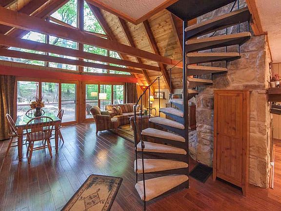 An open floor plan, soaring ceilings, and fantastic updates highlight this light filled 1.5 story over a walkout lower level on the Eastside! Nestled amongst the trees in an extremely private setting just minutes from College Mall, this beautifully landscaped, 3,300 sqft, 4bd, 3ba, 2car features a great room with a floor to ceiling stone fireplace and a wall of windows (literally!), and a kitchen remodel that a cook will love. High end birch cabinets, hand scraped hickory hardwood, Brazilian granite countertops, center island, stainless and glass vented range hood, its own decorative fireplace, and stainless appliance package are some of the recent updates! The master suite is HUGE! In addition to a lovely master bath it contains a stone fireplace, its own private balcony, and a multifunctional loft area. This house is a dream for entertaining, with common spaces that flow well into the almost 2,000 sqft of deck and patio space accessed from each level of the home. The walkout lower level is full of windows and natural light and contains a guest suite with great room, full kitchen, bedroom, bath, and den, accessible from the outside patio or house interior, that could easily exist as its own space. Other recent updates include new cement board exterior and painting/staining/improving decks, new landscaping and extensive tree maintenance, new fencing, and other special touches that make this property feel loved! Ultra desirable location just minutes from Indiana University and Eastside shopping and restaurants in one direction and Lake Monroe just minutes in the other. It's the perfect combination of privacy and proximity, just far enough, but not too far! Do not miss this unique property and its fantastic condition!