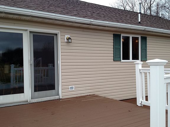 Beautiful ranch style home with 3 large bedrooms. Modern, large eat in kitchen, formal dining area, 16x27 living room, 7 foot ceilings, forced air and central air. Two full bathrooms, master bath with tiled walk in shower with rain shower head. Has 2 1/2 car garage, black top driveway, above ground swimming pool with heater, pool equipment and great 3 tier deck with new vinyl rails. Located only 3 miles away from downtown Fredonia, in a beautiful country setting. This home is great for a family looking for plenty of room, and yard space. Enjoy wonderful, peaceful, summer days or nights relaxing on the deck. Sliding glass doors open to the deck from the master bedroom, and French doors open to the deck from dining room. Great outdoor area for entertaining as well. Owners are relocating and are open to any reasonable offer. If you are looking for a beautiful country home, this is it!