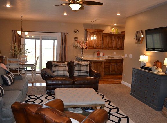 GORGEOUS NEWER HOME ON 5 ACRES WITH WATER RIGHTS AND ANIMALS ALLOWED!! THIS STUNNING HOME HAS AN OPEN FLOOR PLAN WITH BEAUTIFUL 9 FOOT CEILINGS, KNOTTY HICKORY HARDWOOD AND TILE FLOORS, CUSTOM KNOTTY ALDER CABINETRY AND GRANITE COUNTERTOPS THROUGHOUT! GREAT KITCHEN WITH PANTRY AND DARLING CORNER SINK!! 3 BEDROOMS 2 BATHROOMS UPSTAIRS AND BASEMENT FEATURES AN EXCEPTIONAL FAMILY ROOM, 2 BEDROOMS WITH A POTENTIAL FOR ANOTHER BEDROOM AND A FULL BATH (TUB IS INSTALLED, TOILET AND VANITY AND SINK IS ALL THAT'S LEFT) AND STORAGE ROOM! ROOM FOR A HUGE RV PARKING AND PLENTY OF ROOM TO ADD A HUGE SHOP, BARN, CORRALS, OR ANYTHING YOU DESIRE!! PROPERTY IS TREE-LINED AND GORGEOUS AND HAS WATER RIGHTS AND IRRIGATION (ABOUT $200 PER YEAR FOR PUMP POWER, REPAIR AND WATER TAXES - BRAND NEW WATER SYSTEM PUT IN THIS SPRING!!) THERE IS PROPANE FORCED AIR HEATING, MAIN FLOOR LAUNDRY WITH MAIN FLOOR MASTER BEDROOM WITH SEPARATE WALK IN CLOSET, TREY CEILING WITH ROPE LIGHTING AND MASTER BATH WITH SEPARATE SHOWER AND GARDEN TUB!! BRAND NEW SLIDING FRENCH DOOR WITH INSERTED BLINDS (NO DIFFICULT CLEANING!!) LEAD ON TO A REALLY BEAUTIFUL 12X24 FT BRAND NEW TREX DECK! BEAUTIFUL HOME, BEAUTIFUL AREA,