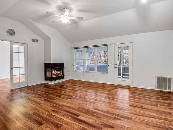Overlooking the woods, it's like living in a quiet tree house. Yet it's within 5 minutes of shopping, the highway, and many other conveniences.