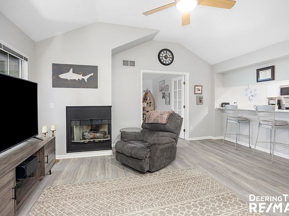 This condo is amazing! Walk in to a cathedral ceiling living area, gas fireplace, wooded view out the back from both the 4 season room and office/den! The kitchen boasts hard surface countertops newer appliances, and tons of cabinet and countertop space! The primary bathroom on ensuite is spoil some with dual closets, dual sinks, soaking jetted tub, and full shower! Primary bedroom also has a cathedral ceiling which you won't find in 1st and 2nd level condos. All of this minutes from the airport, shopping, and entertainment!