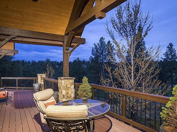 Possibly the best views in Pine Canyon. You will enjoy both sunrise and sunset from the wrap around deck and views of holes 10, 11, 16, 17 a beautiful lake Pine Canyon and Trout Creek. A perfect mountain getaway or a permanent residence, this home has great room with vaulted ceilings, wood burning fire place, surround sound. It also includes a gourmet kitchen with granite countertops, Viking appliances a warming drawer and wine refrigerator, vegetable sink, breakfast bar, and a large island. Fully equipped with stainless steel appliances. This 4 bedroom, 4 bath home offers three master suites, a family room, 2 car garage.