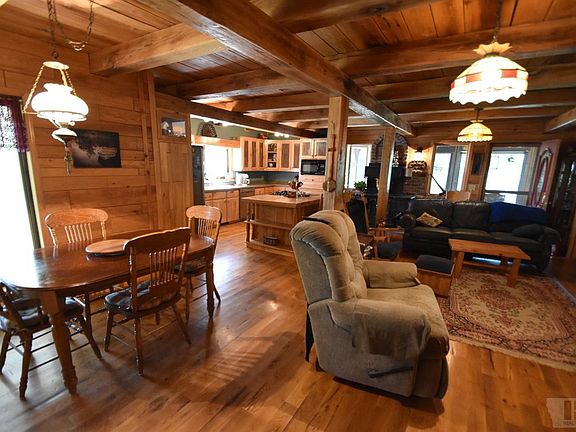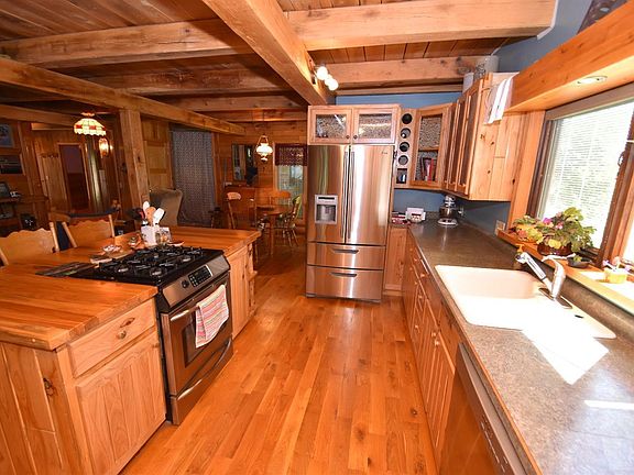 3 Acres m/l***: Country living at it's best in this 3 bedroom, 4 bathroom home. This Custom built timber framed 3 bedroom, 4 bath home with service elevator, a large pond. The house is truly one of a kind. The owner is the builder and the developer of the 240 acres m/l country development. Master bedroom suite with gas fireplace, hickory ceiling and walls, large walk-in shower and jetted hot tub. Guest Bedroom is finished with walnut ceilings and walls, gas fireplace and access to full bath room. Very private setting. The third bedroom on 2nd floor is finished in old barn board, carpet and access to additional bathroom. The large living room has Cathedral ceilings, walls are finished in white oak, with stone wood burning fireplace. Hardwood oak flooring, adjoins large covered porch overlooking your pond and the neighbors pond with deer and turkey frequenting the property. Large kitchen/great room has hardwood floors, custom hickory cabinets, post and beam construction, with timber from