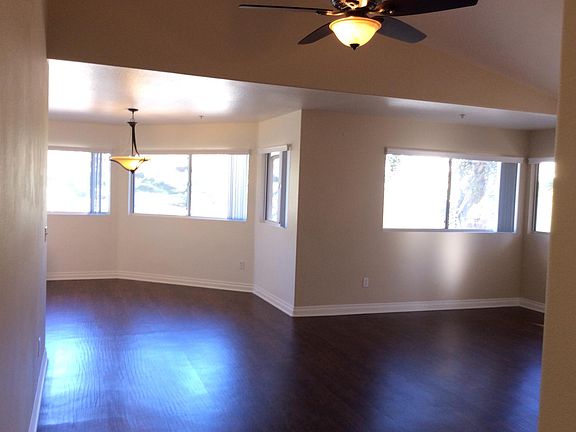Single level open concept makes this home a knockout. Entry on street level yet it is elevated to give a sense of privacy. Beautiful granite countertops in the kitchen and bathrooms. Hard wood type floors thoughout makes it a breeze to keep clean. Large two car garage with washer and dryer. The home is air conditioned. Once you move in you won t want to leave. Owner pays gardener