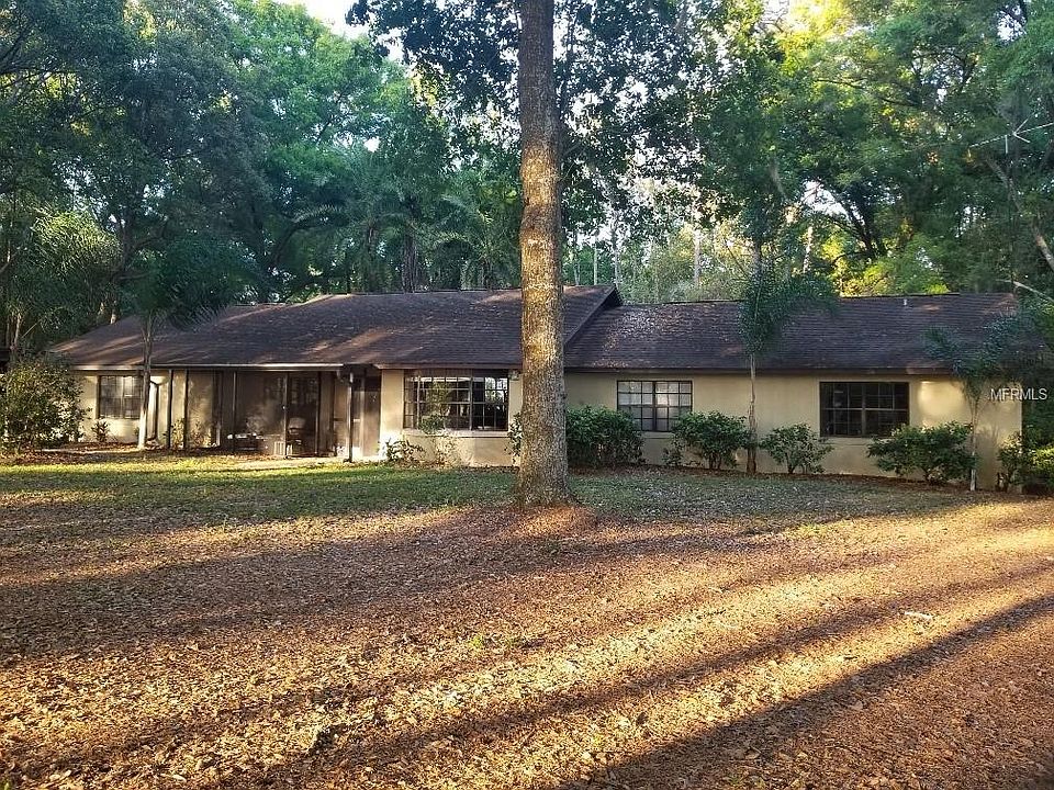 Blanton hideaway, this amazing 4/2/2 is located on 2.44 acres of treed privacy. Home features formal living and dining room, beautiful custom stacked stone fireplace, both the front and back porches have been recently screened in, seller just added 1000 sqft of attached carport with insulated roof panels. Large master bedroom with walk in closet overlooking the backyard. The seller added a large screened in back porch with landscaping area, perfect for BBQ's. There is also some added storage buildings on this beautiful property