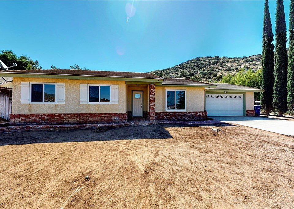 Gorgeous single story horse property on an acre at the top of a culdesac with privacy and stunning views. This newly remodeled, beautiful 3 bedroom home is move in ready with wood-like tile floors, neutral paint schemes, wonderful open concept layout and high ceilings. The family room features a cozy fireplace and convenient built in office nook. This room opens to a large, fenced backyard with brick patio perfect for outdoor entertaining and BBQs. There is also a second brick patio with access from the master made for an early morning cup of coffee and a good book. The property can also be accessed from the rear where the previous owner had horse facilities. Backyard includes fenced in dog run, tuff shed, and goat corral.
