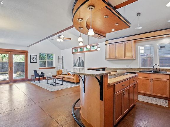 Custom Hood River home with gourmet kitchen, family, dining, and living room on main floor. Radiant floor heat, fir trim, and unique architecture makes this home one of a kind. Guest quarters located on basement level (ground floor entrance), complete with full bathroom and separate entrance.
