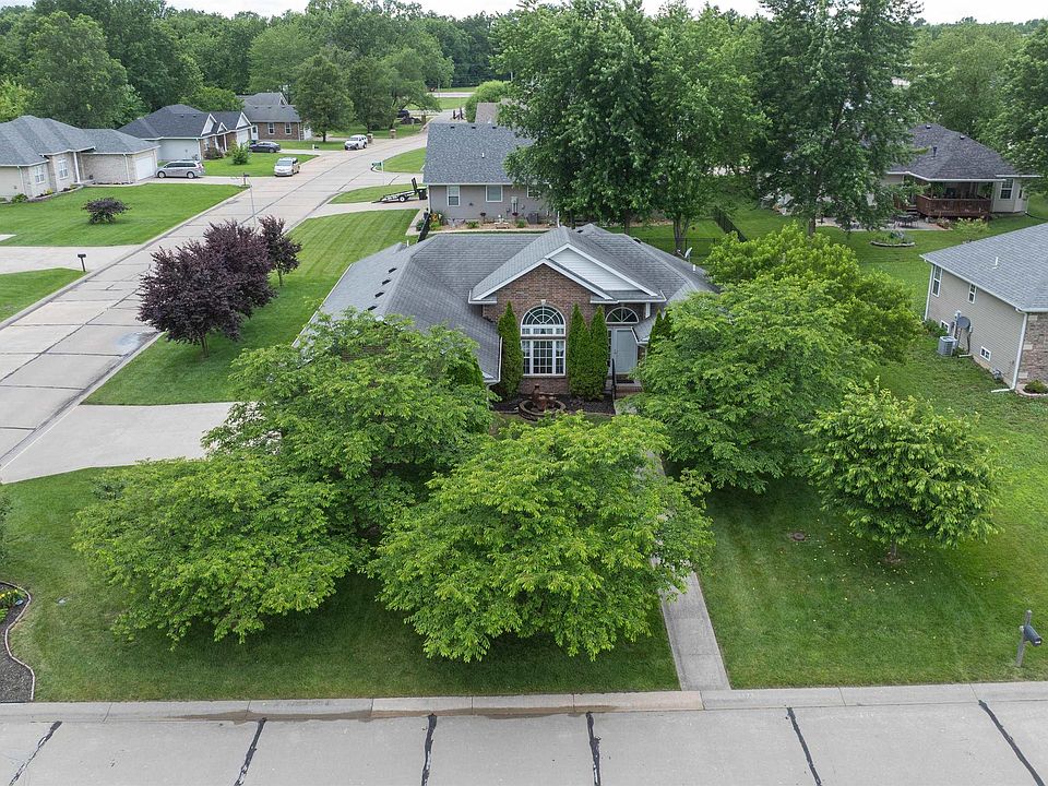 Welcome to this beautiful 3-bedroom, 2-bathroom home designed with comfort and practicality in mind. Featuring a gas fireplace in the living room and a remote-controlled water fountain outside the front door, the house offers a blend of luxury and charm. The split bedroom floor plan ensures privacy, with the primary suite on the north side boasting a walk-in closet and a primary bath complete with a jetted tub, while the south side hosts two additional bedrooms and a full bath. The kitchen is outfitted with a dishwasher, newly installed in May 2025, electric stove, built-in microwave and refrigerator, granite countertop, and flows seamlessly into the living spaces. A full unfinished basement provides ample storage or customization options, while the freshly updated back deck from the summer of 2024 is perfect for outdoor gatherings. This home combines thoughtful design, modern updates, and versatile spaces, ready to welcome you home.