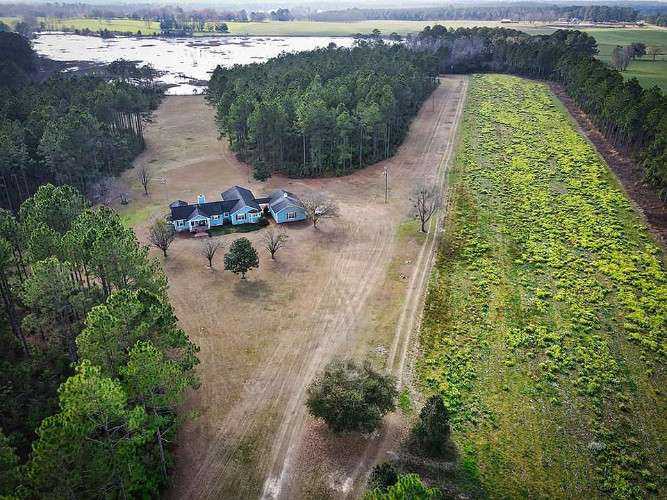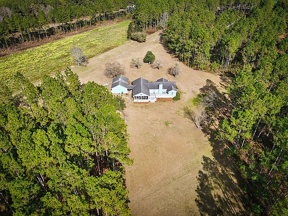 Discover picture-perfect country living in this beautiful acreage property. The split floorplan offers 3 bedrooms and 2.5 bathrooms including a large owner's suite and master bath with twin sinks, a separate shower and a soaking tub. The convenient kitchen overlooks the living room. Just off of the kitchen area is a pantry and storage area as well as a nice sized laundry room and 1/2 bath. Enjoy family gatherings in the massive bonus room that features built ins and hardwood flooring. After a day spent on the land, you can retreat to the comfort of the living room warmed by a beautiful fireplace. The bonus room opens out to the screened porch, attached to a huge deck perfect for hosting the next family event or enjoying summertime grilling as you take in views over the stocked pond that is also used for duck hunting. Beautiful pine trees soar overhead throughout the 41.98-acre property and there is an abundance of wildlife that share in the slice of paradise. The home also features hardi-board siding and a two-car garage with storage space. Nestled within the back of the property is a large workshop with a tin roof and concrete floor offering plenty of space for all of your projects. Additionally a small cabin with a kitchenette, a full bath and loft, offers comfortable accommodation for guests. A section of land is already set up for farming. Bring the family and enjoy your own little paradise.