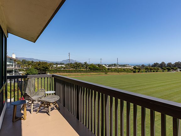 Unobstructed ocean, island, mountain, sunset, & main polo field views abound from this rare 3 bedroom, 2 bath front row Penthouse unit at the prestigious Santa Barbara Polo & Racquet Club. Enjoy world-class Polo viewing from wrap-around view decks while experiencing the ultimate blend of luxury & tranquility. The light & bright Great room with cathedral ceilings, floor-to-ceiling windows, & a cozy fireplace creates an inviting atmosphere for relaxation & entertaining. The kitchen has stone counters & stainless appliances & the primary bedroom includes an ensuite bath, fireplace, & large view deck. The 2 additional bedrooms are both gracious & inviting. Close to the beach, shopping & restaurants, gated & private with a community pool. Embrace the epitome of Santa Barbara lifestyle living.