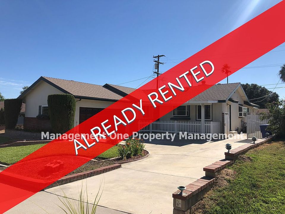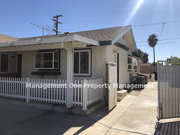 This California Ranch style home is in the perfect location if you need to commute with access to the 60 Fwy and not too far from the 91 Fwy x 215 Fwy interchange, or if you need to be close to UCR - University of California Riverside. PLEASE NOTE -This property is managed by Management One only. Call us FIRST. All on one level, this single-story home has a classic layout with tiled flooring throughout the common areas as well as in the kitchen. This home has Fresh Paint throughout and there is new carpet in 2 of the Bedrooms. The 3rd Bedroom has Beautiful Wood Flooring. The Galley-style kitchen has been upgraded with Oak cabinetry, Granite Counters, Roll-Out drawers and includes a Breakfast Nook, Garden Window, Overhead Microwave, Range Oven, & Dishwasher. Both the Living Room and Family room have a fireplace to warm up when its cool, but the family room is especially perfect for those family gatherings because it includes a built-in wet bar area with mini-fridge. The Rear Yard is fenced in with raised flowerbeds and the side is accessed by a double gate providing the ability to park a small trailer or hitch. The dual pane windows and wood blinds will help to keep the temperature regulated and you can also enjoy the front porch or fully covered rear patio areas when you go outside. The HVAC system has been upgraded as well.The bedrooms are a good size and with two bathrooms you'll have your pick between a shower in one or a full walk-in soaking tub in the other. You won't want to miss out of this one. Apply today, this won't last. Nearby schools: Highland Elementary School, University Heights Middle School, John W. North High School