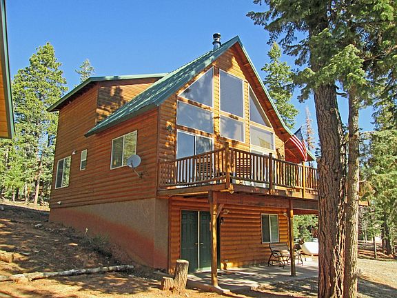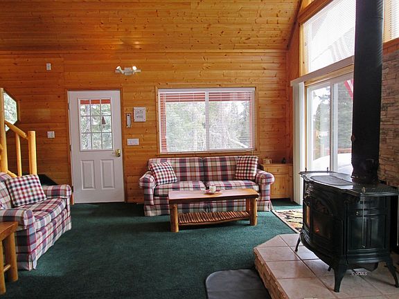 This lovely cabin is located on a .46 acre gently sloping lot that is abundant with graceful aspens and tall pines. The cabin is 3 bedrooms 2.5 baths. Main floor features living room with vaulted ceiling and lots of windows to let in the natural light and cozy wood burning stove. The large kitchen with new fridge and dining space leads out to a back deck with lots of pretty scenery, Also 1/2 bath on main floor. Fantastic master suite with 3/4 bath, walk in closet, a new king bed and mattress and lovely balcony looking out to the forest. 2 guest bedrooms are located on lower level, a full bath along with a large bonus room for TV, games and large entryway. Also a laundry/mechanical room with new washer/dryer & water heater. 280 sq ft detached toy garage with electricity, insulated and finished with 3/4 plywood. Also a built in work bench with shelves and metal storage shelving. Enjoy beautiful views from main floor side and front decks. Most furnishings are included to make it turn key, ready for your family to make mountain memories. (Dining table & chairs, king bedspread have been removed by seller.)