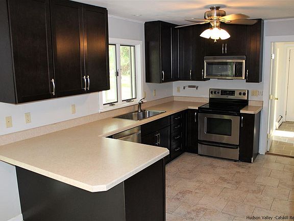 Life will feel a bit brighter in this sunny three (or four) bedroom, three bathroom Cape located in the heart of Stone Ridge. Whip up culinary masterpieces or entertain in the beautifully renovated kitchen featuring stainless steel appliances, ample cabinet space, a breakfast bar, and sliding doors that access the covered back deck. Lovely living room and dining room with warm cherry floors. The first floor den with large closet and bathroom access could easily be used as an office or additional bedroom. Retreat upstairs to the master suite which boasts a walk-in closet and full bathroom. Also upstairs you will find two additional bedrooms and a full bath. Connecting the house to the two-car garage is a spacious breezeway with laundry closet. A bonus room above the garage is perfect for storage, an office, or even a studio. Spend time enjoying the well-maintained landscaping or exploring the 1.5 acres of level property nestling the home. Short drives to Stone Ridge, Kingston, or New Paltz provide plenty of choices in dining, shopping, and other local attractions. Traveling in any direction, you'll find miles of hiking trails, walking paths, nature preserves, state parks, and stunning views of the Hudson Valley.
