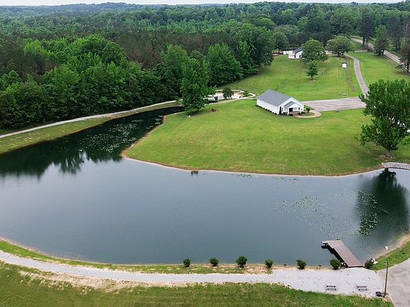 Last you have the Rec Center building that is 4,888 sf, this building has a full kitchen, bar area and a dance floor with production lighting, restrooms, large glass roll up doors patio areas and the makings of an outdoor bar & concession space. The property contains over 25 acres of land and a 2.5 acre pond and is located in a picturesque country setting.