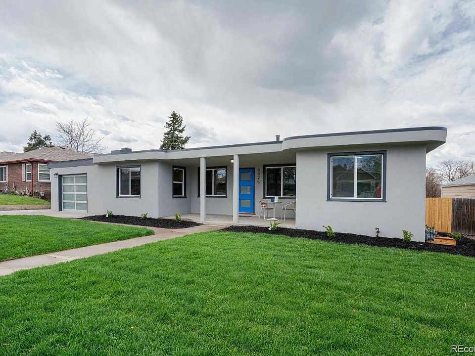 Gorgeous Mid-Century Modern stucco & brick ranch full remodel in perfect Englewood location adjacent to Denver. Much new development all around. Home features open floor plan, private master suite, large laundry room, good size yard, huge covered rear patio for entertaining & garden level basement. New items include stunning kitchen w/ European cabinetry, granite countertops, new stucco exterior, new windows, glass garage door, custom tile bathrooms, new plumbing and light fixtures, new trim and solid panel doors + much more! Other features include walk in closets, central A/C, 2 fireplaces, a mountain view and home warranty. Close to area hospitals, Hampden ave corridor + Cherry Creek shops and restaurants. Recently appraised at $645k. Buyer to verify square footage measurement.
