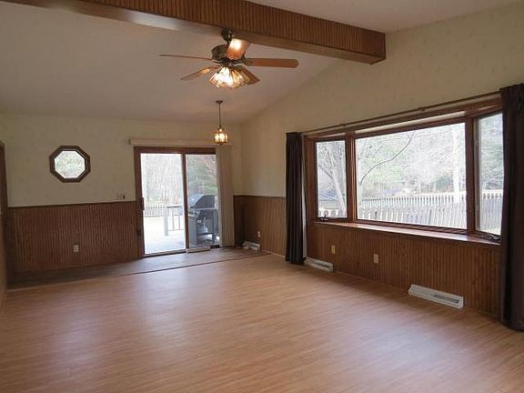 Affordable Country Living is yours with this 3 bedroom, 2 bath ranch style home on Rhinelander's east side. This home is situated on a large .77 acre lot that includes a fenced yard, large camp fire pit and backyard deck and patio. The main floor of the home features a huge living room, galley style kitchen, dining room, 3 main floor bedrooms and a full bath. The partial basement includes a laundry and utility area, full bath and extra storage. Other amenities include a 2 car detached garage with extra storage, blacktop driveway, central air and is nicely landscaped. This home is in move-in ready condition.