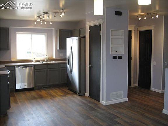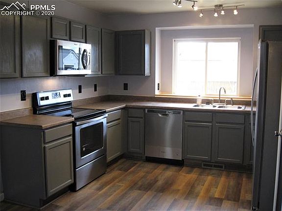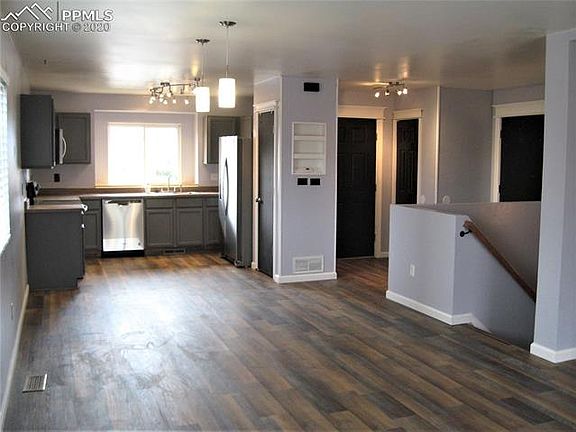 Very Bright and Open Floor Plan Rancher with Full Basement. Clean and updated throughout. Brand New Stainless Steel Appliances, New Luxury Vinyl Flooring, New Paint on Main level; New Plumbing and Lighting fixtures. Freshly Updated Main Level Bath w/ New Tile and Vanity; Recently Updated bsmt Bath with Full Tile Shower; Pikes Peak View from Kitchen; 2 beds up and 2 down. Large family room in basement. Large Stamped Concrete Patio- perfect for outdoor living. Brand new roof to be installed; Garage door opener; A/C New windows and sliding glass door in 2014