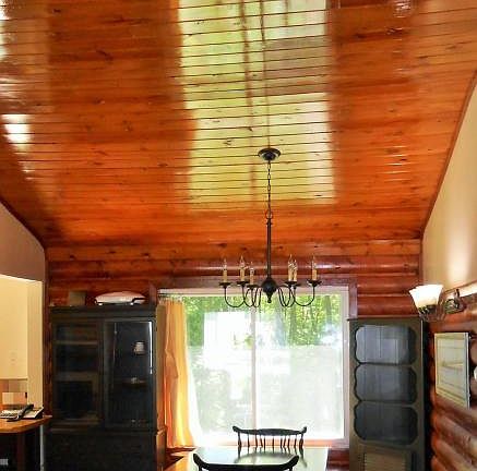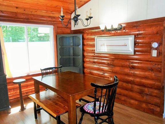Wonderful view of all-sport Cedar Lake where you can launch your boat just a few doors down for all that water fun! The low maintenance, treed property has beautiful perennial gardens, a fire pit, and a shed for gear. The pine ceilings and log walls in the living area are a classic accent to the open floor plan, and the wood burning fireplace adds cozy warmth. You'll love the ceramic shower and floor in one bath, some coved ceilings, ample storage, and all the appliances. This ready to live home features updated windows, newer roof, furnace and water heater, 200 amp electrical, central air, and 4 ft crawl. Make this your new home or vacation spot!