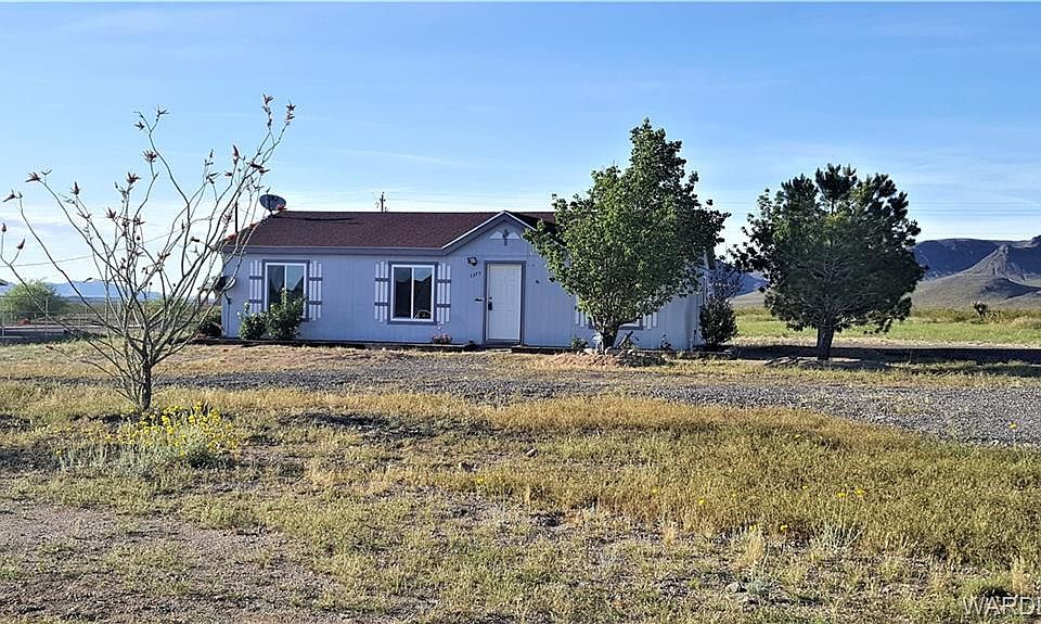 NEAT CLEAN AND MOVE IN READY! Super cute 2BR, 2BA, ground set MH on 1+ acre on a paved street in the wonderful Walnut Creek Subdivision. This home features 1,176 sq. ft. of living space, a large country kitchen with lots of cabinet and counter space plus space above the cabinets to display your collectibles and treasures, casual dining, cozy den area located off the kitchen, split floor plan, master bath features double sinks, walk in closet, shower only, full guest bath and nice size guest bedroom. Ceiling fans through out, new dual pane windows, new carpet and freshly painted interior. Exterior features rose beds, mature trees, two big storage sheds and chain link fenced dog area off one of the sheds. There's plenty of room to add a garage or shop. Easy access, close enough to I-40 for easy access to Kingman for work, shopping, dining, medical, etc.