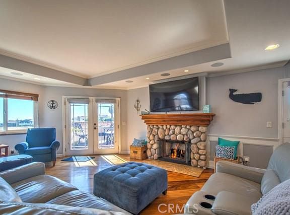 Welcome home to the downtown Lantern district! This gorgeous open and bright townhome is perfect for the person looking to live the harbor/beach lifestyle. Entertain with flair in the dramatic living room/ dining room combo with vaulted ceilings and tons of natural light, and gorgeous stone fireplace. French doors lead you to the ocean view balcony. Some of the wonderful features included are: Venezuelan Teak flooring on top- floor and on the lower level has exotic hardwood floors (the Garrison Collection), skylights, wainscoting, recessed lighting, ceiling fans and crown moldings. Enjoy cooking in the modern kitchen with custom Teak cabinetry, granite counters, walk in pantry plus scenic hills view from the kitchen garden window. There are 2 generously sized primary bedrooms each with their own baths. One of the primary bathrooms has been totally remodeled with a stand alone sunken tub, walk in shower and dual sinks. This home is equipped with top of the line audio visual system throughout the home and wiring for optimum wireless reception. Additional bonus room great for office, gym or 3rd bedroom w/ private exterior entrance off of the garage. The garage has built in cabinets for storage. This home is close to the beach, Dana Point Harbor, Marina, restaurants, shops and freeways.