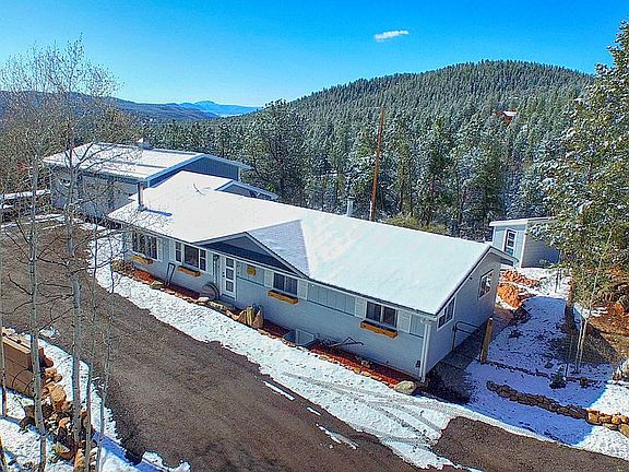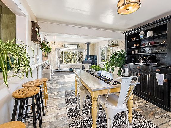 Open Houses Friday 5/21 12pm-3pm and Sat 5/22 1pm-3pm Enjoy mountain living with contemporary finishes in the heart of Pine! This ranch style home features beautiful new finishes including luxury vinyl plank flooring, updated kitchen with all new stainless steel appliances and a kitchen island to add more counter space. Warm up in the snowy winters with the wood burning stove and embrace the stunning mountain views on the spacious patio grilling in the summer, and hot tubbing under the starry summer skies. Make your way to the HUGE garage with 3 bays and storage. This garage is heated/insulated, and perfect for all sorts of workshop activities. Additional features: radiant floors in 2 bathrooms; commercial tankless water heater (installed 2018); she shed; multiple RV parking pads.