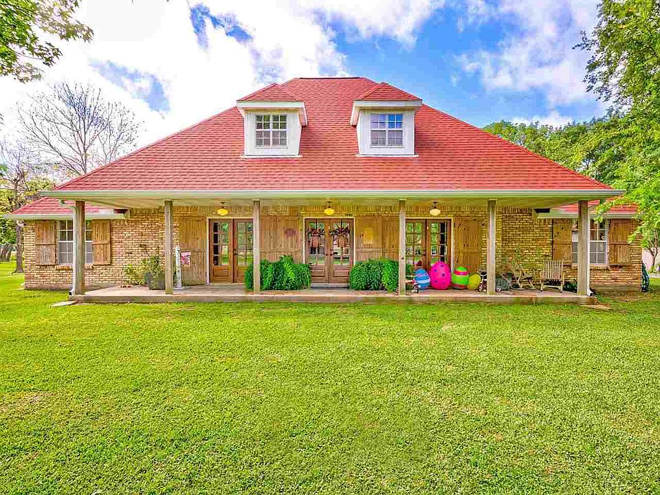 Southern Living Magazine "Louisiana Country House" floor plan featuring 4 bedrooms, 3.5 baths (plus another full bath in oversized 3 car garage). Appx 3079 sq ft living area, formal dining, library/living rm, family room w/fireplace, sunroom, kitchen with breakfast area & island work center, large adjacent pantry/laundry room, double-height foyer, and master bedroom downstairs. Upstairs, 3 more bedrooms & 2 full baths. Welcoming front porch and quaint pergola and sitting areas in back yard. Charming and spacious and tastefully updated granite and tile floors. Landscaped yard with mature trees and detached 34' x 40" 3 car garage with finished room & shower/bathroom. Bridge City I S D.