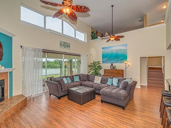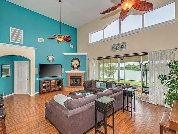 This stunning lake front home offers 4 bedrooms, 3 baths w/ a bonus room and an office. This well maintained home is located in the desirable gated community of Carillon Lakes. This 2 story home has over 2700 sq ft of open living area w/ a split floor plan. The master suite, 2nd bedroom and bath are located downstairs. The spacious kitchen offers solid surface counters, pantry, breakfast bar and eat in kitchen. The large family room has volume ceilings and gas fireplace w/ gorgeous view of the lake. The spacious formal dining is perfect for entertaining. Beautiful oversized Master suite offers walk in closets, dbl sink vanities, and a extra large walk-in shower w/ dual shower heads. The spacious bonus room and office with built in cabinets are located upstairs. Home has hand scraped laminate flooring in the kitchen, family room, halls, dining room and stairs. This home offers a covered, screened lanai in the front and rear of the home complete w/ pavers making it perfect to enjoy the stunning lake views. You will love the dual zone Nest thermostat that can be controlled from your phone or computer for energy efficiency. This home offers inside laundry room, 2 car garage, paver driveway/sidewalk that completes this wonderful home. Enjoy carefree living w/ low monthly HOA fees that includes 24/7 guarded gate, lawn maintenance, community pool and spa, fitness, billiards, tennis courts, playground, parks, stocked fishing lakes, boat ramp and walking trails. This home is located close to Polk Parkway, County Line Rd and I -4.