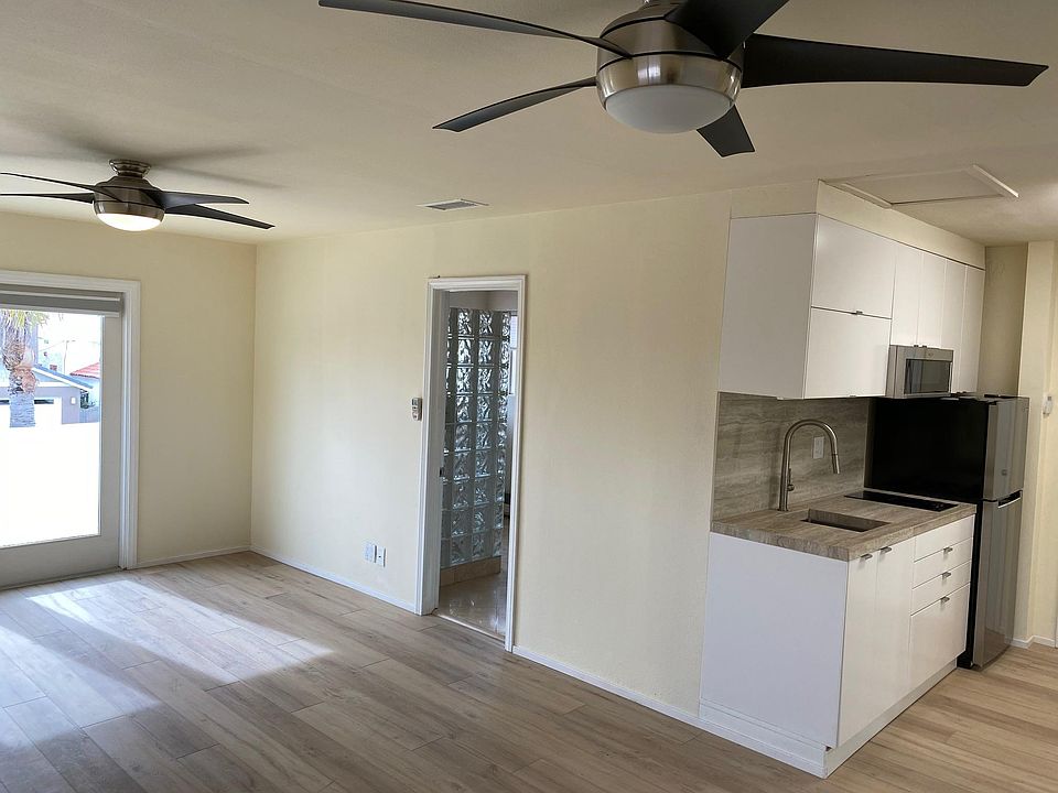 Newly renovated, ocean-view studio in Carlsbad walking distance to Carlsbad Village and 1 block from the beach/boardwalk. All utilities included. 2nd story unit has a private balcony facing the ocean for amazing sunset and ocean views. New Washer/Dryer in the unit and the Kitchen has travertino slab counter/backsplash, new cabinets, new appliances, stainless steel fridge + microwave and built-in dual burner cook-top. Bathroom has ocean views, bottom-up privacy shades, large tiled double-shocpeparate entrance.1 Person only. No pets and non-smokers only. Looking for a quiet respectful tenant with excellent credit and references. Available now. Street parking only. 1 Person Only. All Utilities Included: Internet, Electricity, Gas, Water, sewer and trash. 1 year lease. No pets allowed and non-smokers only. Excellent credit and no previous evictions required. Looking for a quiet respectful tenant. $30 application fee for background/credit check. $3400 / month gross income requirement. Street parking only.