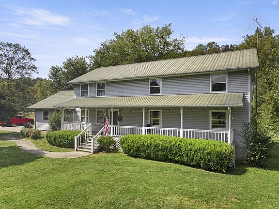 New flooring installed 1/28/24 throughout ENTIRE home including all main areas, bedrooms and bathrooms! Nestled in a serene country setting you'll find this large Farmhouse is surrounded by Mature trees, 2 creeks, rolling forrest, large barn and covered stalls and 10 +/- acres! As you come up the steps to your front door, you are greeted by an extra large covered rocking chair front porch. Step inside to find a living room with lofted ceilings, large country kitchen with eat in dining space, huge mud room and a sun room off the back. Down the hall you'll find 2 bedrooms with a shared full bath in the hall and a primary suite with full bath on the main level. Upstairs you'll find an additional 5 bedrooms and an extra large full bathroom along with walk-in storage at the end of the hall. Home is currently on Spring / Well Water but Utility water is also available at the road. Call today to schedule your showing!