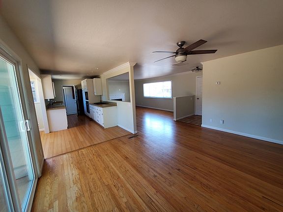 Great open floorplan in this single level 1,450 sq.ft. home. 3 bedrooms, 2 baths. Hardwood floors, fireplace in family room, bright kitchen with dining area, stainless steel appliances, spacious master bedroom. Laundry room with washer & dryer hookups. Large backyard with large patio and deck. Low maintenance landscaping. Close to shopping and schools. Renter responsible for utilities. No smoking. Renter is responsible for utilities. Owner maintains landscaping. No smoking. No pets. There is a storage shed in the backyard that belongs to the owner. Security Deposit and first month's rent is due at signing. 1 year lease. There is an ADU over the garage that has its own entrance and is rented. The garage and the driveway go with the house rental.
