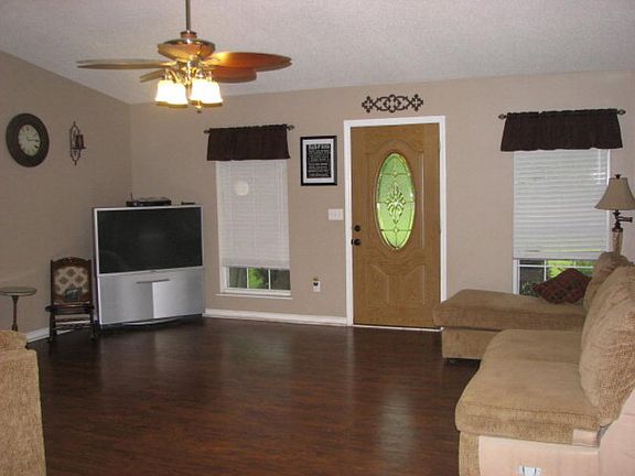 Newer built home with 4 bedrooms, 2 full bathrooms. This home has a nice open floor plan with laminate hardwood flooring and vaulted ceiling in the living room. Split bedroom plan with master suite on one side and 2 bedrooms and bath on the other; the 4th bedroom is off from the utility room and was a portion of the garage converted to create a fourth bedroom. It could also be used as a family room, game/hobby room, or office. The laundry is large enough for an extra refrigerator, freezer, or desk area. The garage is not large enough for vehicles, but can be used as storage for yard equipment, or other outdoor toys. The backyard is fenced and perfect for children or your pets. This neighborhood is a great location; convenient to the high school, mere sports complex, citizen's lodge park, and downtown Marianna.