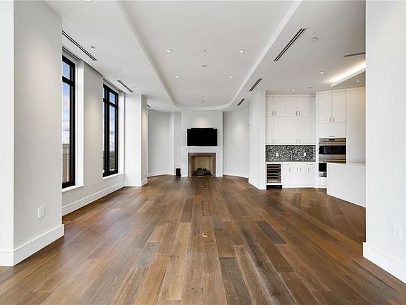 Cozy fireplacePanoramic skyline viewsExpansive islandDesigner finishesWraparound balconyHardwood floorsOversized windows