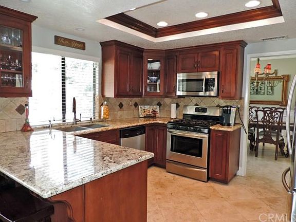 BEAUTIFULLY upgraded home in a quiet North Chino Hills neighborhood. Hardwood flooring throughout with travertine tile flooring in the kitchen and formal dining area. The kitchen has been remodeled with newer cabinetry, granite counter tops, stainless steel appliances and recessed lights. The spacious family room has a fireplace, casual dining area and double french doors (allowing in lots of natural light) that lead to the backyard. Other detailed upgrades include crown moulding throughout, plantation shutters, wainscoting in the dining room, and decorative iron balusters on the stair banister. There is a separate formal living room with fireplace. On the first level, there is a bedroom and remodeled bathroom with shower, convenient for guests or in-laws. All bedrooms have ceiling fans. The yard has ample space for entertaining, with a covered patio, sparkling pool, and platform for relaxing/sunbathing. Great location in close proximity to award-winning schools, freeway access, and walking distance to markets and "The Shoppes" outdoor mall with restaurants.