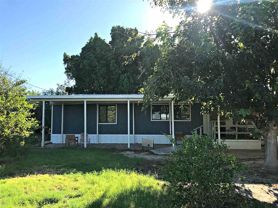 Bring your farm animals and green thumb, this property has it all! 3 bedroom 2 bathroom manufactured home on 2.3 acres with sheep pens, chicken coop, luscious fruit trees including citrus; pomegranates; avocados; dates; figs; peaches; apples; and much more. Unfinished guest house with income potential too. Don't miss this opportunity for country living, make an offer!