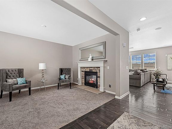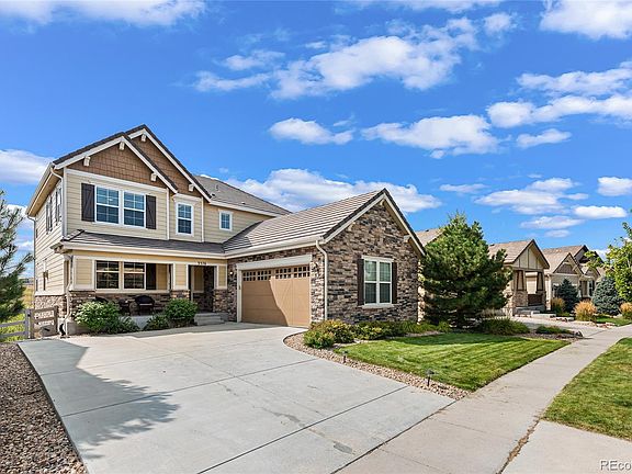 Welcome home to one of the best sites in the coveted Anthem Highlands neighborhood! This stunning two-story home offers the perfect setting, backing up to majestic open space, ponds, and an unbelievable view of our Colorado Rocky Mountains! Relax on your back deck or walkout patio and watch the sun rise and set, and wave to a hot air balloon or two! This beautifully maintained dream home features impeccable quality, style, and design. Each floor is balanced with elegance and class in this two-story masterpiece which features 5 bedrooms, 4 bathrooms, with full finished walkout basement, exceptionally large family room, open design kitchen and living room perfectly laid out for entertaining. The main floor is light and bright with many windows facing breathtaking views. The expansive kitchen boasts a deep and large island with granite countertops, beautiful tiled backsplash, double ovens, gas cooktop, high-end stainless-steel appliances, and plenty of cabinet space! The granite upgrade is continued throughout the home. The master suite with large windows includes a private five-piece bathroom, granite tops, and a spacious walk-in closet. Enjoy the low maintenance yard with your view from the upper deck or lower patio off the walkout basement. This home has exclusive access to the resort-style Parkside Community Center. Anthem is unlike any other community and offers fitness classes, an abundance of outdoor amenities like trails and parks, and amazing community pools with fantastic schools! Now is your chance to live in elegance.