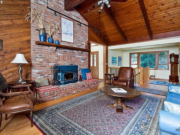 Majestic, park-like, country property with a seasonal creek and foot bridge. Private paved drive. Spectacular living room w/open beams, skylights, hardwood flooring, and great flow for entertaining or a growing family. Spacious primary bedroom on main level w/ensuite bathroom & walk-in closet. Lower level boasts a family room, library, office, craft/school room, & a pantry room in addition to 2 more bedrooms. Oversized garage. Barn w/shop & car or RV/Boat storage. New roof 2021. Pella windows.