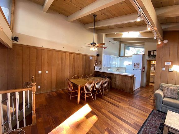 Lowest Priced 4-BR condo/townhome in Mammoth by far! South facing, light and bright, 2-story end-unit townhome with views of Mammoth Crest! Many upgrades include wood floors w/cork subfloor, insulated roof, forced air heat (propane), big picture windows, skylights, custom master bath w/extra deep jetted soaking tub, durable quartzite flooring in the entry, and much more! Everyone is sure to be happy and comfortable here. Enjoy basking in the sunshine while taking in mountain views from the large upstairs deck, or head over to the swimming pool and hot tub to relax after an amazing day on the slopes, or after hiking, fishing, etc. And there's 2 designated parking spots in front of the unit! Chateau Sans Nom is a relatively small complex featuring an indoor swimming pool, hot tub, and is ideally located on the shuttle route at the top of Chateau Road, near Snowcreek Meadow. Close to town, too. Not a rental! Occasional owner use only for many years. Hands down, this is THE BEST 4-Bedroom condo on the market at this price point.