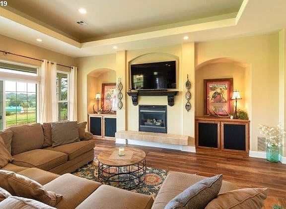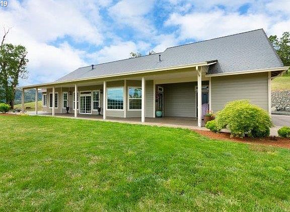 MUST SEE PROPERTY overlooking restful hill-scapes, distant mountains, abundant wildlife and famed North Umpqua River. World class salmon & steelhead fishing at your disposal. Only 1,600 ft from Hestness Park and Boat Launch. Nestled on two acres of land this move-in-ready home has been lovingly maintained. The driveway guides you through an Asian Pear Orchard. Awaiting you above is luxury living. Open floor plan, 10 ft ceilings and gratuitous architectural details such as arches, tray ceilings, custom built-in cabinets, and grottos. An abundance of windows draw light even on the cloudiest of days and open to panoramic views of the geese as they fly in formation along the rivers path. Outside you'll be spoiled with an expansive decorative stamped concrete patio that spans the entire length of the home and continues across the garage. So much space for social gatherings and BBQs or simply enjoy sipping your coffee, tea or wine while taking in the views. On the practical side you'll enjoy surround sound, on-demand hot water, security system with remote monitoring and walk in pantry. In addition, the kitchen and laundry room include both gas and electric service for appliances. A comprehensive solar panel system is hidden from view and greatly offsets your electric bills. Spacious 450+ sf Bonus Room above the garage with separate climate-controls is perfect for your home office, gym, game room, man cave, bedroom or whatever your needs desire. Oversized three-car garage and workshop afford all the space you need while electrical connections for RV & emergency power are readily accessible. Exercise your green thumb in the deer fenced garden or tinker around in the garden shed. Schedule your private tour of this HOA free paradise today.