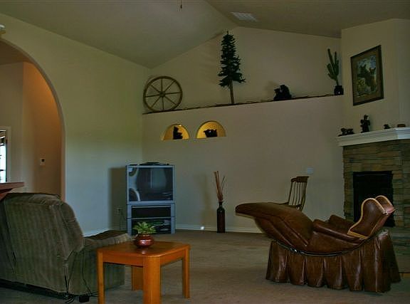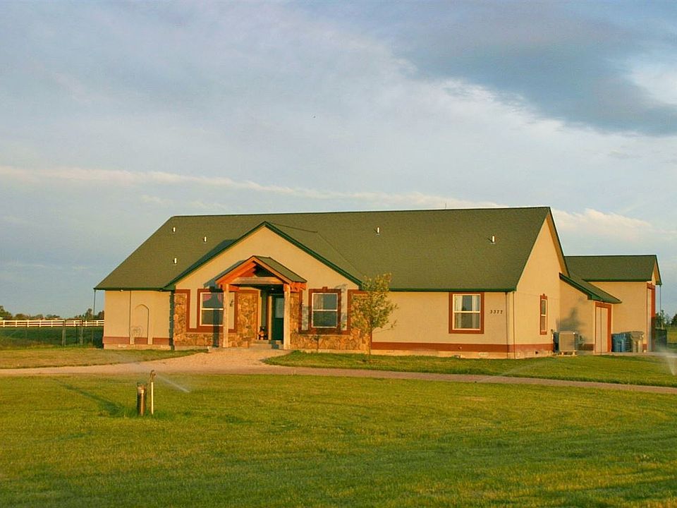 PC4702 Custom built single level home on 10 acres with a great open floor plan. 4 bd 2.5 ba split plan, formal dining, large kitchen & eating area, vaulted ceilings, expansive hardwood flooring, large master bed opens to rear covered patio. Fully fenced backyard, auto sprinklers front & back yards. 3 car garage with 3rd bay being RV & pass through to backyard. Electric fenced horse pasture, 30x40 barn/shop, approx 5 acres planted in alfalfa with pod style irrigation. Efficient upgraded heating system.