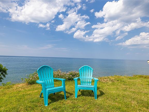 OPEN SUNDAY, 7/16/23 12NOON-2 PM. SPECTACULAR LAKE ONTARIO DREAM HOME! 68' STONE BEACH! PANORAMIC VIEWS & SUNSETS! NATURE PARADISE! PLUS FIVE CAR GARAGE & WORKSHOP! UPON ENTERING THIS IDYLLIC SETTING OFF LAKE ROAD THE DRIVEWAY TAKES YOU PAST BEAUTIFUL TREES UNTIL YOU SEE THE AMAZING FIVE CAR GARAGE OUTBUILDING...PROCEEDING TO LAKE RESIDENCE WITH $100,000+ OF UPDATES! PAVER PATIO ENTRY WITH VIEWS OF LAKE ONTARIO! OPEN TO A SPECTACULAR TWO STORY GREAT ROOM WITH STONE FIREPLACE, HARDWOOD FLOORS & WALL OF WINDOWS - MILLION DOLLAR VIEWS! ALL OPEN TO BEAUTIFUL KITCHEN WITH CUSTOM CABINETRY, BREAKFAST ISLAND, & STAINLESS APPLIANCES. OPEN TO WATERVIEW DINING AREA WITH FIREPLACE THAT OPENS TO THE NEW DECK! ONE FLOOR LIVING AT IT'S BEST! 1ST FLOOR FEATURES TWO SPACIOUS BEDROOMS, BATH & LAUNDRY! THE EXCITMENT CONTINUES UPSTAIRS WITH A WOOD CATHEDRAL CEILINGS OVERLOOKING THE GREAT ROOM ALONG WITH A PRIMARY SUITE INCLUDING WALK-IN CLOSET & BATH. OPEN TO THE LAKE VIEW OFFICE! PLUS LOWER LEVEL ACTIVITY ROOM! NEARBY PULTNEYVILLE, BEAR CREEK BOAT LAUNCH..EASY ACCESS TO ROCHESTER! AMAZING VALUE! OFFERS DUE 7/24/23 @ 1PM. SQ FT 1st FL: 1,646, 2nd FL: 772, LOWER LEVEL: 445 = Total 2,863 SQ FT.