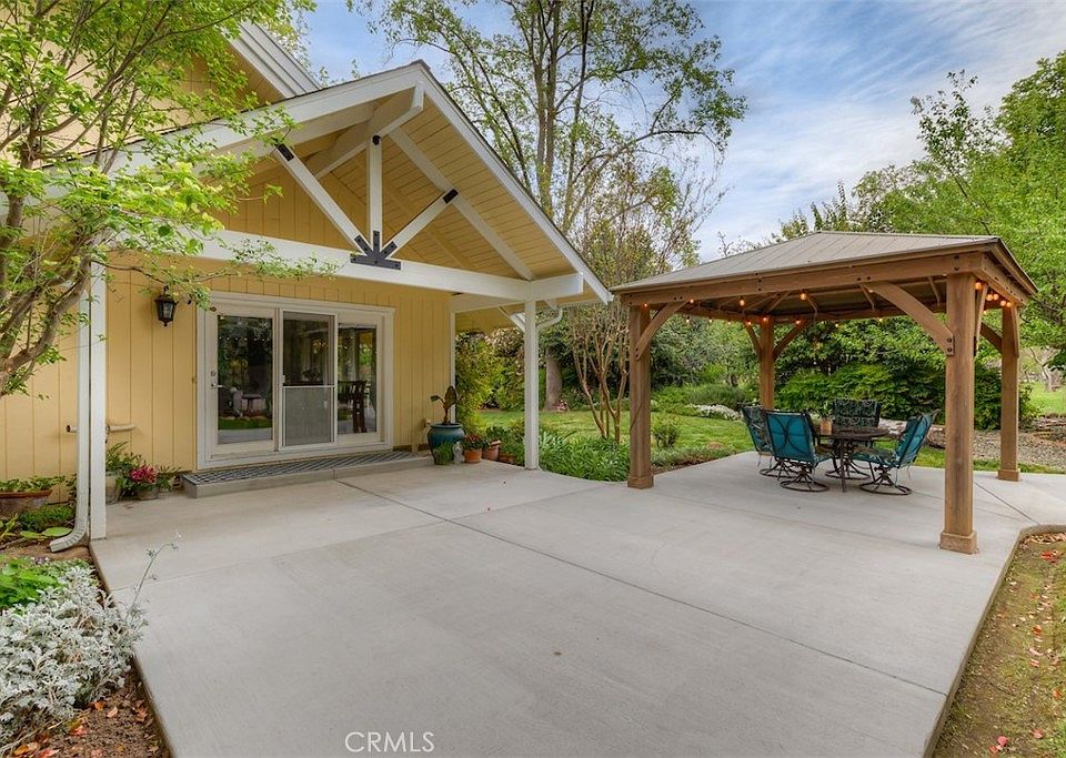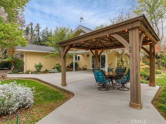 Nestled amidst walnut and fruit trees on 1.54 acres, this enchanting Chico home beckons with its natural beauty. 3 bedrooms and 3 bathrooms spread over 3,091 sq ft, the home radiates natural light and adorned with open beamed ceilings. Privacy and ample space define this home, with two bedrooms upstairs sharing a Jack and Jill bathroom accessed through custom barn doors. The expansive living/dining room and secondary living room, currently a licensed pre-school. Endless possibilities with this bonus square footage, a blank slate to make it your own. Perfect for a home business, game room, homeschool, or simply a family room ( with its own entrance ). The master suite is a retreat unto itself, featuring elegant flooring, his and her vanity sinks, a separate shower and bathtub, and three walk-in closets, with its own private entrance for utmost seclusion. Culinary delights await in the well-appointed kitchen, beautiful quartz countertops, abundant storage and counterspace, luxury vinyl plank flooring, appliances including a wine fridge, built-in cooktop, double oven, and stainless steel refrigerator and dishwasher. French doors from the dining area open onto a picturesque patio adorned with a charming pergola overlooking an in-ground pool, surrounded by lush landscaping—a serene oasis ideal for entertaining or family gatherings. The property boasts 26 fruit trees, including pomegranate, peach, and apple - just to name a few. Additionally, a 1,500 sq ft shop/barn with roll-up doors provides added utility. Complete with solar power and a new HVAC, this home epitomizes the perfect blend of comfort, luxury, and sustainability.