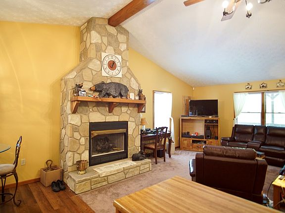 Spacious 2 Bedroom, 2 Bath on three acres (Parcels 17.61, 17.62 and 17.65), situated within a quiet cabin community. Kitchen and Living room offer an open concept layout with vaulted ceilings and a beautiful gas fireplace. Main suite can accommodate a king sized bed or larger and still offer plenty of room for additional furniture. Both bathrooms offer tons of space and storage, with laundry hookups in the guest bath for convenience. Handicap Accessible ramp at the back deck provides easy access into the kitchen, and all rooms provide adequate space for maneuvering a chair or scooter. Kitchen is equipped with numerous lower cabinets for ease of use and both bathrooms still offer accessibility. The property features a carport for two vehicles and a single car garage. Home is being sold As-Is and seller is providing a 1 Year Home Warranty.