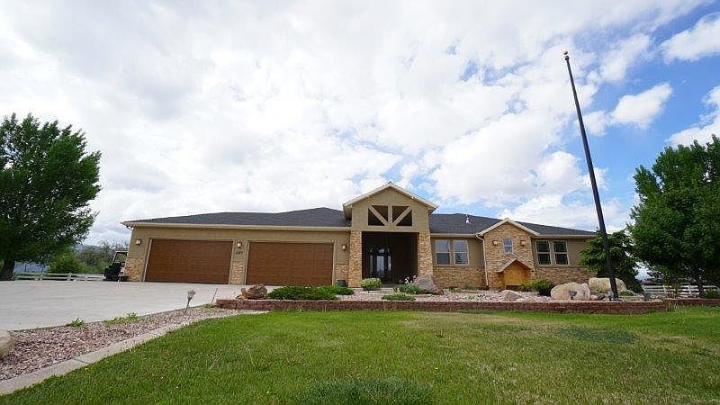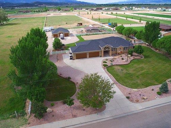 Exquisite ranch style home located on 4.34 acres.It includes 3 car off garage with bathroom and sink,attached 4 car garage,3 stall horse barn,along with trampoline pit, volleyball court,and immaculate landscaping.This home has a lot of space and rooms are good sized with each bedroom having its own bathroom.Large beautiful kitchen, dinning room and great family room.This home has beautiful views