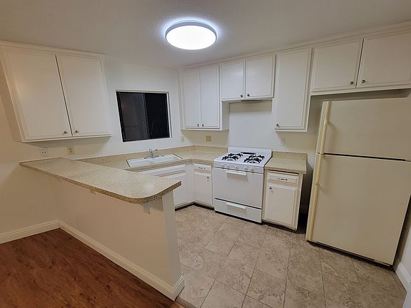 Approximately 580 SqFt 1 Bedroom, 1 Full Bath, New Wood Floors in Living room and bedroom, New tile in kitchen and bathroom, New 5 inch baseboards, Fresh Paint, New Refinished Counter Tops and Refinished Cabinets Kitchen w/ Frig, Lot of Light, Large bedroom and large walk-in closet, Tons of storage, 1 Carport. Excellent Street and Very Well Maintained Building. Gas, Water & Trash included in rent. 1 year to 2 years. 1 month security deposit