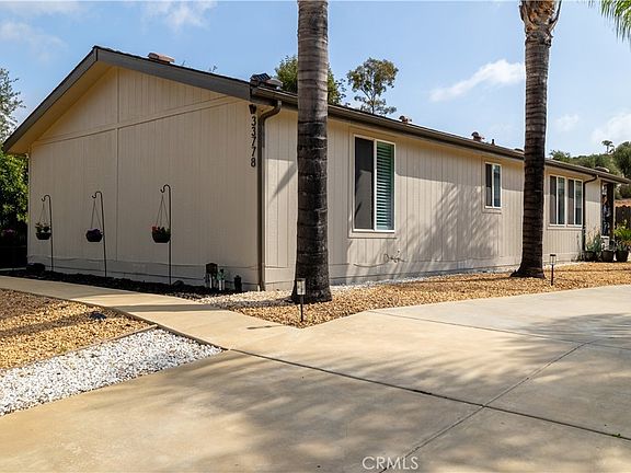 Welcome to 33778 The Farm Rd on The Farm in Wildomar! This charming manufactured home offers a cozy and comfortable living space with 3 bedrooms and 2 baths. Step inside and be greeted by brand new laminate flooring in the living areas and bedrooms adding a touch of modern elegance....tile in the kitchen, bathrooms and laundry room. New baseboards throughout the home. The open floor plan seamlessly connects the living room, dining area, and kitchen, creating a spacious and inviting atmosphere. The bedrooms are a nice size, providing ample space for relaxation and privacy. The exterior of the home and garage have been painted within the last year. One of the standout features of this property is the oversized lot, spanning an impressive 22,216 sq. ft…that’s ½ an acre! The backyard has a new concrete slab with a gas fire pit and is fully enclosed with wire fencing. Plenty of room for putting in a pool, adding an ADU or possible RV parking. This generous space allows for endless possibilities, whether you want to create a beautiful garden, set up a play area, or simply enjoy the outdoors. 2 car detached garage. There is a fenced in dog run too for the furry family members. Located in The Farm community with low HOA and taxes, you'll have access to a range of amenities, including a clubhouse, 3 swimming pools, dog park, basketball courts, tennis courts, baseball field, citrus trees, catch and release ponds for fishing, hiking trails and multiple community events. Did I miss anything? The neighborhood is known for its tranquility and friendly atmosphere, making it a great place to call home.