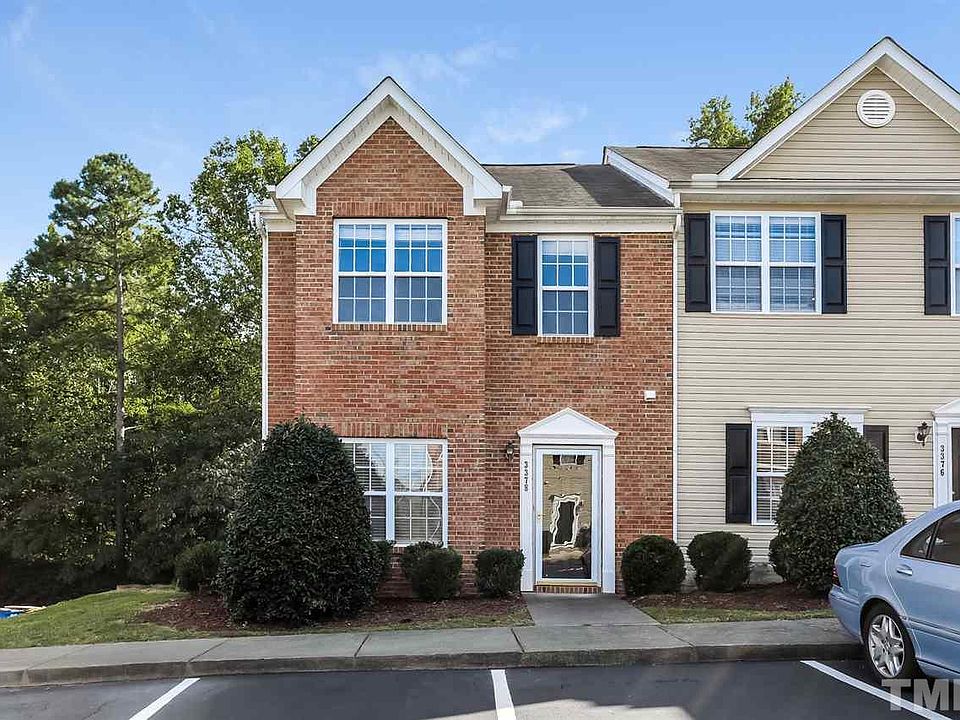 This Raleigh two-story corner townhome offers hardwood flooring, a fireplace, a kitchen pantry, and a walk-in closet in the master suite.